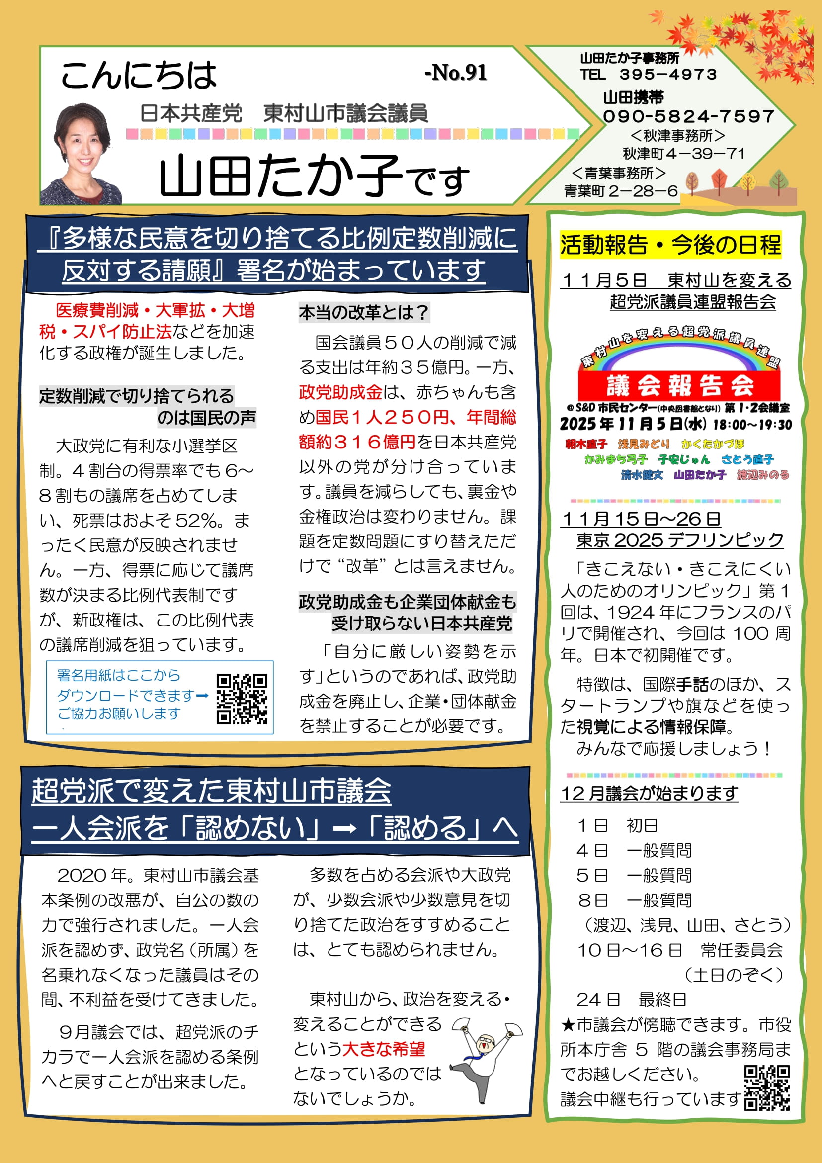 2020年。東村山市議会基本条例の改悪が、自公の数の力で強行されました。一人会派を認めず、政党名(所属)を名乗れなくなった議員はその間、不利益を受けてきました。